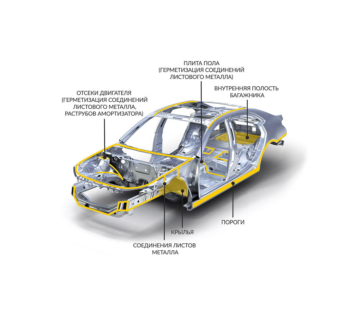 Предназначен для герметизации и защиты соединений металлических листов – внахлестку и сварных – в элементах кузова, а также для копирования оригинальных заводских структур – OEM. При помощи соответствующих сопел и пистолета можно достичь разных эффектов.