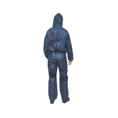 Защитный комбинезон синего цвета изготовлен из полипропиленового волокна плотностью 40 г/м2, что при небольшом весе обеспечивает достаточно высокую механическую прочность. Эффективно защищает от грязи, не вызывает перегрева и потения, обеспечивая высокое удобство в носке. Достаточная защита от пыли > 5 мкм.
