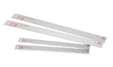 Алюминиевая измерительная линейка, обеспечивающая дозировку правильных пропорций отвердителя и растворителя по отношению к акриловым, базовым лакам и грунтовкам. Измерение с помощью линейки следует проводить в цилиндрическом сосуде.