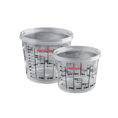 Ёмкость для смешивания лака с черной шкалой. Изготовлена из полипропилена (прозрачного и безопасного материала высокой прочности). Емкость легко опорожнять, что позволяет экономить лак. Напечатанная на емкости шкала помогает точно дозировать лак.