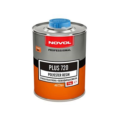 PLUS 720 cодержит структурную полиэфирную смолу с добавлением соответствующих катализаторов. В качестве отвердителя служит 50% паста из пероксида бензоила (NOVOL арт. № 5022). Данный продукт предназначен для ремонта больших дыр и проржавевших мест из жести, а так же пластиковых деталей автомобильного кузова, яхт и кемпинговых прицепов.