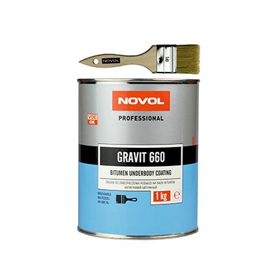 Антигравий битумный под кисть - это продукт, создающий крепкий, эластичный глушащий слой, устойчивый к ударам камней. Защищает от влияния атмосферных факторов шасси легковых автомобилей, автобусов, строительной техники и грузовиков. Продукт устойчив к воде, соли, кислотам и щелочам, создает покрытие с хорошими изолирующими свойствами, легко наносится и не стекает. На Gravit 660 нельзя наносить иных лаковых покрытий.